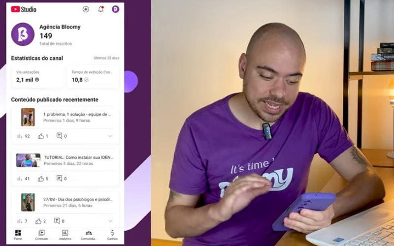 Muita gente tem receio de começar um canal acreditando que a plataforma dá muito trabalho ou que os resultados demoram demais. Entretanto, o YouTube tem uma vantagem poderosa: os conteúdos continuam gerando retorno por anos, diferente de redes como Instagram ou TikTok, onde o alcance é muito mais passageiro.